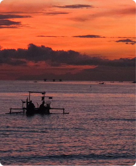 The venue for this BBTRS® Training is set in the beautiful Balinese countryside, facing the sea. It’s a stunning spot for snorkeling and with a bit of luck, you might even see some dolphins. During the training, there will also be opportunities to just relax and enjoy the pool or to treat yourself at their Wellness Centre which offers Balinese, Ayurvedic, and Western-inspired beauty and health treatments. Accommodation is in Balinese-style bungalows constructed out of bamboo, natural stone, and wood, equipped with open-air bathrooms, hot water, fully-equipped kitchens, and bedrooms with mosquito nets. We will enjoy three buffet meals a day with a large variety of healthy Indonesian and Western-inspired foods, largely vegetarian and some fresh fish dishes, served at the beach-facing restaurant. Mineral water, different teas, Balinese coffee, and cocoa are available throughout the day.